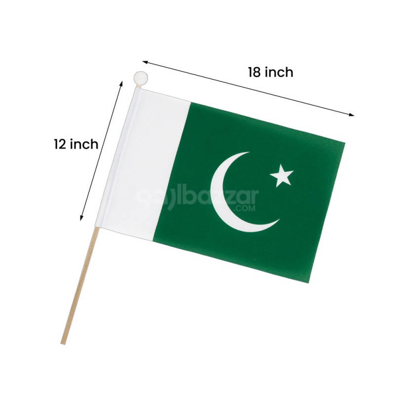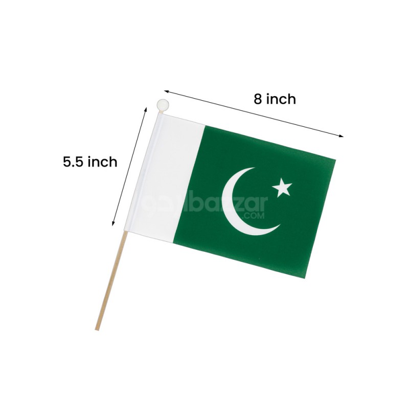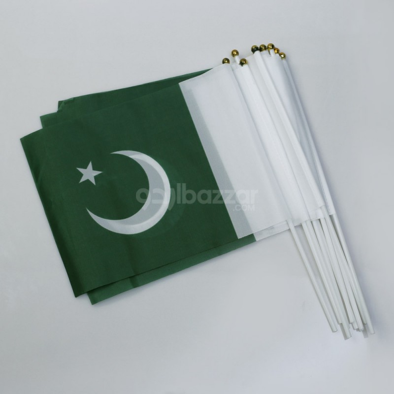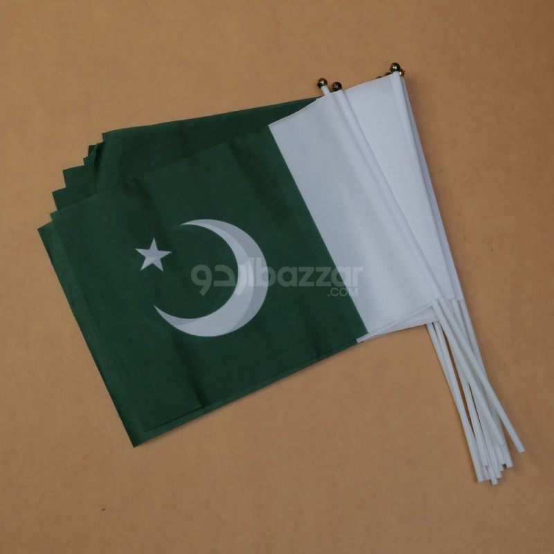 Wave your patriotism high with this 6-piece set of Pakistan flags mounted on sturdy plastic sticks. Perfect for 14th August celebrations, school functions, parades, and rallies. The flags are made with durable material and feature vibrant green and white colors to proudly represent the nation.