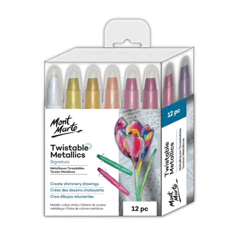 Currently Watching : 2 PersonAdd some shimmer and sparkle with our Twistable Metallics 12pc. These gel sticks create thick strokes, making them ideal for colouring large surfaces. Plus, they offer a metallic finish, smooth blending and glide effortlessly across the page. Thanks to the textured finger grip and twistable pen body, these colour sticks are a breeze to create with and will help your next art, craft or school project shine!